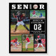 Create a custom Baseball photo display printed on foam core board ideal for high school senior night recognition, awards banquet or graduation party utilizing this easy-to-upload photo collage template with 5 pictures in various shapes and sizes with the title SENIOR incorporating their class year and accented with a baseball, your player's name, number or school initials, school name and/or mascot name or your custom text in your choice of text and background colors you can change to school colors in EDIT (shown with white text on black). OPTIONS: The sample is shown in a 18x24" size; other sizes are available (choose Custom Size for even borders by changing the height and width proportionately AFTER clicking the UNLOCK icon that looks like a chain link). You can also transfer the design to a poster, banner or other products or have the designer convert it to a digital download file for printing locally. ASSISTANCE: For help with design modification or personalization, color change, resizing, transferring the design or converting to a Download file, contact the designer BEFORE ORDERING via the Zazzle Chat MESSAGE tab or email makeitaboutyoustore@gmail.com.