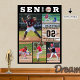 Create a custom Baseball photo display printed on poster print ideal for high school senior night recognition, awards banquet or graduation party utilizing this easy-to-upload photo collage template with 6 pictures in various shapes and sizes with the title SENIOR incorporating their class year and accented with a baseball, your player's name, number or school initials, school name and/or mascot name or your custom text in your choice of text and background colors you can change to school colors in EDIT (shown with white text on black). makeitaboutyoustore@gmail.com. OPTIONS: The sample is shown in a 18x24" size on Value Paper (Matte); other standard and custom print sizes and paper quality, Instant Digital Download file for printing locally or transferring the design to a foam board, banner, canvas or other product options are available on the ordering page. RESIZING TIP: Choose Custom Size for even borders by changing the height and width proportionately AFTER clicking the UNLOCK icon (looks like a chain link). ASSISTANCE: For help with design modification or personalization, color change, resizing or transferring the design, contact the designer BEFORE ORDERING via the Zazzle Chat MESSAGE tab or email makeitaboutyoustore@gmail.com.