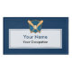 Baseball icon with two bats and a ball over a blue shield. Custom background color. Custom text fields for name and occupation.