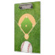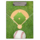 On this clipboard, A baseball is cropped off on the bottom of this clipboard on a bed of grassA diagram of a baseball field prints above. Main contact information prints against the background on the reverse. Perfect for baseball or softball coaches, teams, leagues, sporting good stores or any sports retailer. Available with matching products.