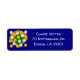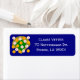 These return address labels have a ball themed design of a ball field made from diamonds and half-circle and baseballs and softballs made of circles with threads.