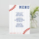 Red white and blue baseball / softball wedding reception menu with pinstripes. Personalize it with your event details. Great for sports fans.