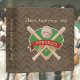 Baseball sport memories theme binder with brown chevron striped background, personalized with name and number on front, for the graduate. Baseball diamond with bats and ball wrapped in red banner. Glove graphic on back with number.