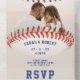 The perfect catch baseball all in one wedding invitation with couple photo. Personalize it with your wedding details, names, and a couple photograph. Great for sports fans or athletes.