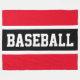 This sporty, athletic design features bold text inside a highlighted wide black stripe with white pinstripes on a bright red background with "BASEBALL" spelled out. The text is optional and can be personalized.