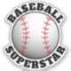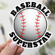 A sporty sticker with a baseball and the phrase 'Baseball Superstar' curved around the ball. Great gift idea for your sports player.