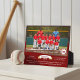 Celebrate your season with this personalized baseball player and their baseball team photo plaque, designed with a bold half-tone navy background and faux woodgrain texture for a classic sports look. Showcase your team photo above a woodgrain baseball bat graphic personalized with your team name, and highlight the callout player’s jersey number on a baseball graphic with their name in a banner design. Add your season year, team roster, and coaching staff names to create a lasting end-of-season gift or team keepsake for players, coaches, and families. Perfect for Little League, high school, or travel ball teams. Please note: all colors can be changed to match your team's colors. Design by Moodthology Papery