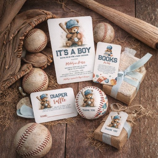Baseball Teddy Bear Baby Shower BoyDesigned by Boryana Kostova