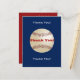 A baseball on a dark blue background decorates this unique and fun "Thank You" postcard. The reverse has white lettering on a red background. You can easily change the text for name, address, message, etc. Sports fans will love it! Matching postage stamp is zazzle.com product 172271809504704779. All Rights Reserved © 2014 Alan & Marcia Socolik.