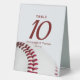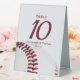 Baseball theme close-up photo, templates for numbers, names, and date. Red and white, and ideal for wedding décor,bridal shower or engagement parties.