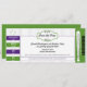 Baseball themed wedding. Perfect Save the Date designed as a baseball ticket with pin stripes in the background. Colors used are PURPLE AND GREEN throughout with black text. If you have any changes to the design that you might like (colors, wording etc) email paula@labellarue.com BEFORE YOU CUSTOMIZE OR PLACE YOUR ORDER so a new template can be created for you.