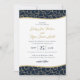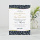 Elegant navy blue and gold wedding invitation with changeable background color and editable text.