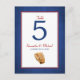 A classy baseball themed wedding table number. Featuring a baseball glove design in classic shades of blue, red and white. Perfect for a baseball or sports themed wedding. Easily customize for your event!