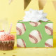 Wrapping paper shown with a sports baseball print on a green colored background. Customize this item or buy as is.