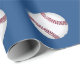 Wrapping paper shown with a sports baseball print on a blue background. Customize this item or buy as is.