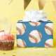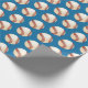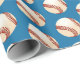 Wrapping paper shown with a sports baseball print on a blue colored background. Customize this item or buy as is.