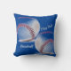 These sporty throw pillows feature white baseballs with red stitching on a blue background. The pillow is All American in red, white and blue with two baseballs on one side and one ball of the other. All text on each side can be personalized with a Name, Team or your baseball player's number. The pillows can be further customized by editing the blue back ground to any color you wish. These pillows are ideal for any fan of the American pastime that is Baseball.