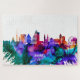 Abstract Watercolor Skyline of Basel, a city on the Rhine River in northwest Switzerland, close to the country’s borders with France and Germany