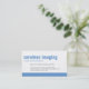 Type is king on this business card. Your company or own name is set in large sans serif type which plays off the color bar on the base of the card. All type is customizable along with your website or any other pertinent information printing on the reverse against a matching blue. A versatile card that can work for a consultant, home business, retail shop or any professional. Available in alternate colors with matching products.