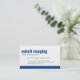 Type is king on this business card. Your company or own name is set in large sans serif type which plays off the color bar on the base of the card. All type is customizable along with your website or any other pertinent information printing on the reverse against a matching dark blue. A versatile card that can work for a consultant, home business, retail shop or any professional. Available in alternate colors with matching products.