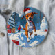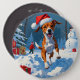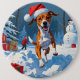 Basenji Dog Playing in Snow Winter Scene Button