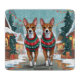 This festive design captures the joyful spirit of the holiday season, featuring an adorable dogs.Nestled in a winter wonderland, complete with a decorated Christmas tree, and beautifully wrapped presents. Snowflakes gently fall, adding a magical touch to the scene, while the vibrant colors of the holiday decorations create a warm and cheerful atmosphere.