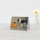 This notecard features a reproduction of my original oil painting of a Basenji, black cat and pumpkin.