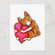 From Andie's original ink and colored pencils subject illustration featuring a red/white Basenji squeezing a heart shaped pillow. (c)2014 Andie.