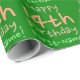This loving birthday wrapping paper design features a message like "Happy 14th birthday, First-Name!", where the name and birthday number can be personalized. The background is colored green. Wrapping paper like this could perhaps be used to wrap gifts being given to celebrate somebody’s birthday. [~Z0000243]