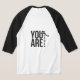 I bought the Men's Basic 3/4 Sleeve Raglan T-Shirt, White/Navy. It arrived on time for a gift and is of a great quality and fits perfectly! So cute! Zazzle has done it again! The printing was clear and filled in solidly.