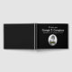 This mournful funeral or memorial service guestbook features the message "We love you,", and the customized name and birth/death dates of the individual who has passed on. It also features an area for a personalized photo. It could be used to record condolences for the family and friends of somebody who has recently passed on.