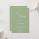 Having your Basic And Elegant Wedding Sage Green Invitation match the theme of your party is a great detail that your guests will appreciate. The thoughtfulness of a consistent party theme is often appreciated and can show your guests that you can host a cohesive event.
