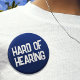 Let others know your medical needs with this simple deafness badge by JessicaAmber. This button features the slogan 'Hard of Hearing' in a fun font, over a plain dark blue background. You can edit the text and colors as needed. ⭐ For more physical health pins, visit my store Zazzle.com/Elder_Vitality ⭐ For custom orders, message me on Zazzle