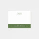 Clean post it notes design. Your initials and contact info in a minimalist green and white design.