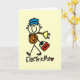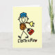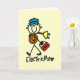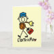 A stick figure electrician in a blue cap holds a roll of wire and a toolbox on Basic Electrician profession T-shirts, mugs, hoodies, cards, stickers, keychains, tote bags, and other electrician apparel and gifts.