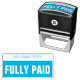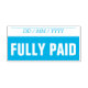 This basic, simple rubber stamp design features the messages "FULLY PAID" and a line where a payment date can be written. It could be used to mark an invoice or bill as having been paid in full.