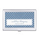 This Business Card Case has a blue and white gingham background with a white rectangular outlined by a thin border. The text inside is styled with a mix of script and simple fonts, creating a clean, classic, and elegant look.