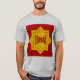 The shirt is good quality and fits just fine, but the colors of the printing are not as bright as in the sample photo. Not the best. The colors are a lot brighter in the sample photo; when I received the shirt they appeared faded. The red looks a little more pink and the blue is a lot lighter. N.B. I did not wash the shirt yet.
