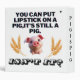 Add a touch of humor and charm to your wardrobe or accessories with this playful design featuring the cheeky phrase, "You can put lipstick on a pig, it's still a pig." This vibrant and whimsical artwork showcases a cute piglet at the center, surrounded by golden wheat stalks, creating a delightful and eye-catching composition. The bold, multi-colored text adds an extra layer of fun, making it perfect for those who appreciate a good laugh and a bit of country charm.