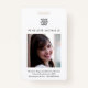 Classic black and white identification badge with photo and logo on the front, and return address if lost on the back of the badge. This professional item also includes business location, job title, and employee id number.