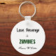 One sided keychain with "Love, Revenge & Zombies"