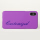 This basic and plain phone case design features an orchid colored background along with a script-like blue colored name that can be customized.