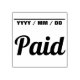 This simple rubber stamp design features the messages "Paid" and a line where a payment date can be written. It could perhaps be used to indicate that a bill or invoice has been fully paid.