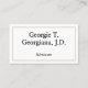 This plain, basic, and clean business card design features a double-line border. It could be used by a professional such as an advocate, barrister, solicitor or lawyer. The name, profession and contact details can be personalized.