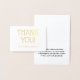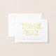 This basic, plain gold foil thank-you greeting card design features the message "THANK YOU!" on the front, along with a customizable message on the inside. It could be used to offer thanks to somebody who has done something special.