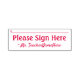 This basic rubber stamp design features the message "Please Sign Here", and a line for a signature or initials to be written above. It also features a custom educator or tutor name. It could perhaps be be used by a teacher, tutor or educator to ask a student’s parent(s) or guardian(s) to review and acknowledge the mark that a student got on a test, an essay, a project, a quiz, or some other school assignment.