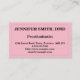 This minimalist, basic, and minimal business card design features a single-line border with rounded corners. It could be used by a professional such as a prosthodontist, periodontist, cosmetic dentist or oral surgeon. The name, profession and contact details can be personalized.