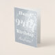 This elegant and simple silver foil birthday card design features a message like "Happy 94th Birthday, Andrew!" on the front. The name ("Andrew") can be changed to personalize the card. The inside features a customizable message like "May your 94th birthday be a special and joyful one!". It could be given to somebody who is celebrating their ninety fourth birthday. [~Z0000010]