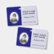 This simple, basic badge design features a customizable staff or employee portrait image, along with a personalized name and job title. Badges like these could perhaps be used by employees of a business.