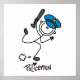 A basic stick figure police officer wearing a police hat and billy club on police officer profession T-shirts, mugs, tote bags, cards, stickers, and other items that can be personalized with a name or other text.